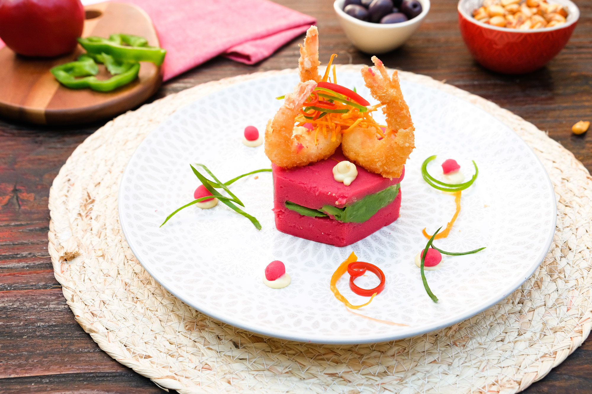 Son siete nuevas recetas de platos peruanos que se suman a la amplia carta de Rocoto. Destacan una innovadora Causa de camarones apanados que consta de un Timbal de papa prensada con ají amarillo, toques de limón y sumo de beterraga acompañada con camarones apanados en panko; el imperdible Tiradito de salmón nikkei, que son finas láminas de salmón, marinadas en una rica salsa acevichada al estilo nikkei, decoradas con sésamo y alcaparras; Chaufa de Quinoa 3 sabores, el cual destaca una Quinoa salteada con mariscos, pollo y carne en aceite de sésamo y salsa de soja con verduras, trozos de tortilla de huevo y pimentones; Chaufa de Quinoa Mariscos, una perfecta mezcla que consta de Quinoa salteada con mariscos en aceite de sésamo y salsa de soja con verduras, trozos de tortilla de huevo y pimentones; Chaufa de Quinoa Lomo, que es quinoa salteada con lomo en aceite de sésamo y salsa de soja con verduras, trozos de tortilla de huevo y pimentones; Chaufa de Quinoa Pollo, una preparación de quinoa salteada en aceite de sésamo y salsa de soja con verduras, trozos de tortilla de huevo y pimentones; Chaufa de Quinoa Vegetariano que viene preparado en aceite de sésamo y salsa de soja con verduras, trozos de tortilla de huevo y pimentones; Arroz con mariscos a la norteña, exquisitos y frescos mariscos salteados con pisco y salsa de camarones al estilo norteño, con toques de zapallo loche y chicha jora; Parrilla Marina, perfecto para disfrutar un festival de mariscos marinados en salsa anticuchera acompañados de exquisitas papas rusticas; Medallones de carne en salsa anticuchera que son tres cortes de lomo adobados en salsa anticuchera, acompañados de papas doradas salteadas en mantequilla y choclo peruano y para finalizar, unos Spaghetti con champiñones crocantes, unas deliciosas pastas mezclados en una fusión de salsas de tomate y huancaína, acompañados de unos ricos champiñones apanados en panko.